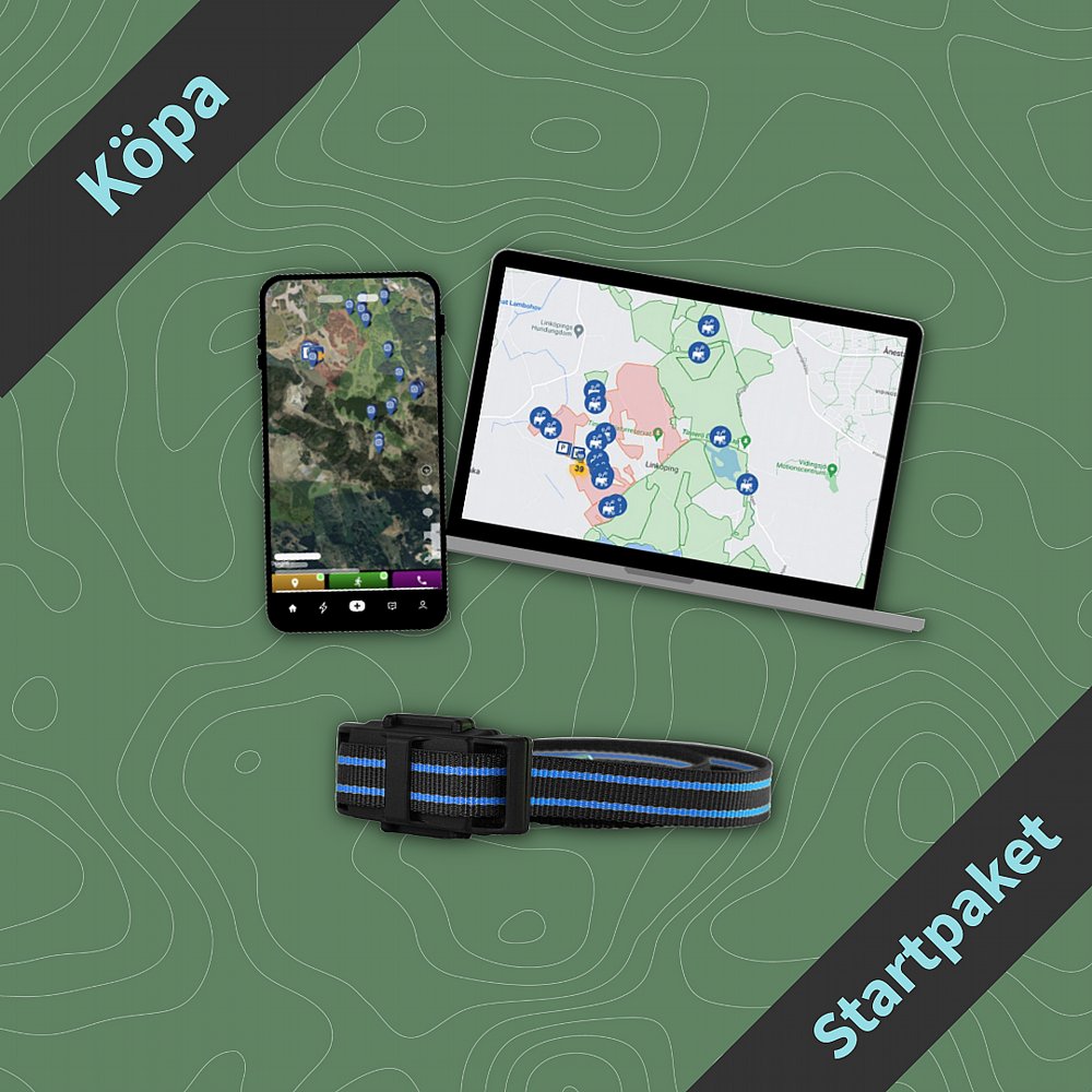 Köp av ett startpaket med GPS-tagg, halsband och abonnemang per djur